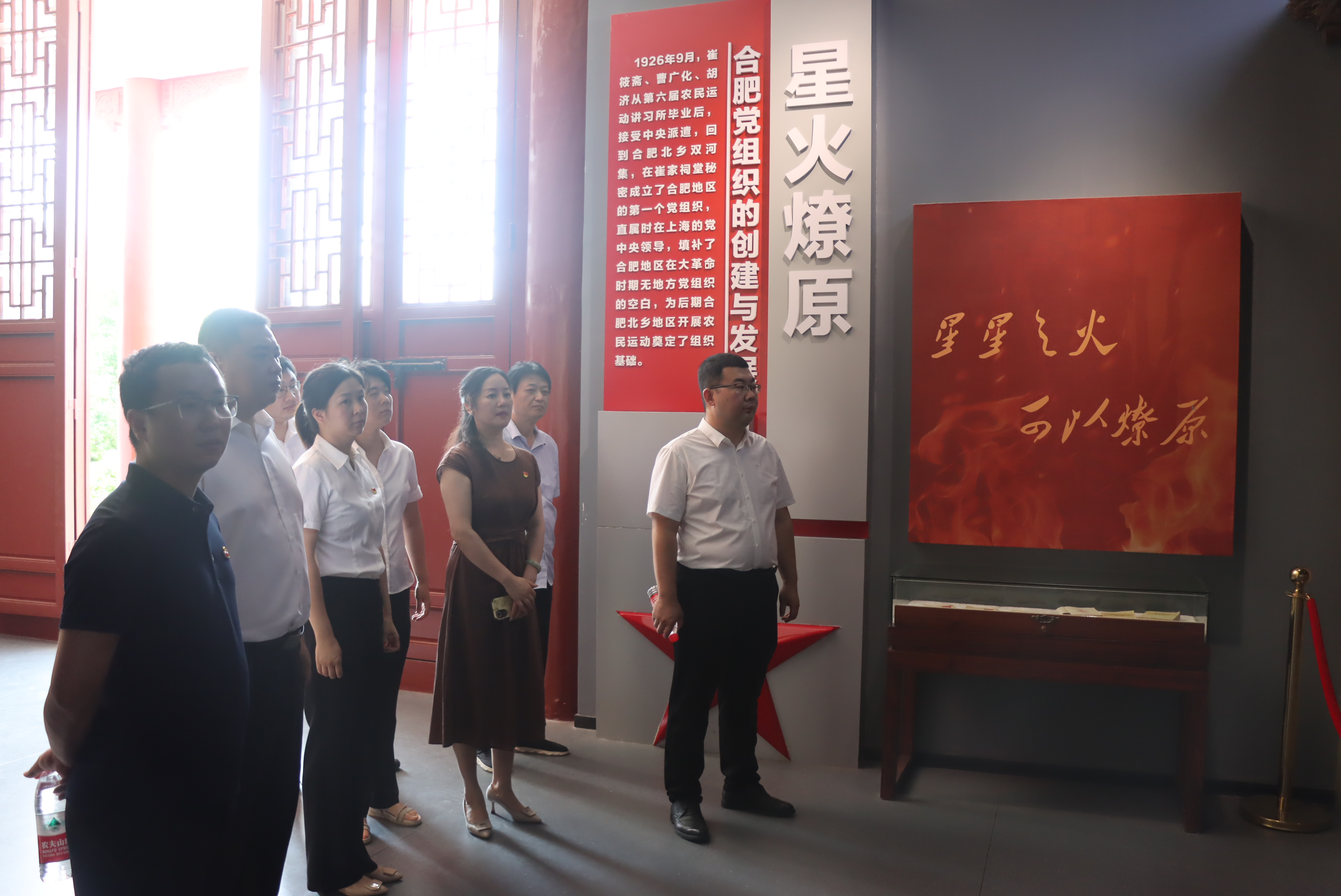 中共合肥北鄉(xiāng)支部紀念館是合肥市愛國主義教育基地、黨史教育基地、黨風廉政建設(shè)教育基地,同時也是為紀念合肥地區(qū)第一個中國共產(chǎn)黨組織(中共合肥北鄉(xiāng)支部)而建。大家跟著講解員認真了解了中共合肥北鄉(xiāng)支部創(chuàng)建歷史背景與開展革命光輝歷程,走進崔筱齋紀念館,大家在簡樸莊重的展廳里認真了解了崔筱齋烈士的生平履歷、革命歷程。展廳里珍貴的文物實物、翔實的檔案資料,吸引大家駐足良久并詳細詢問有關(guān)情況,深入了解了合肥北鄉(xiāng)黨支部艱苦卓絕的奮斗史和光輝歷程。懷著無比崇敬的心情,黨員們面向黨旗重溫入黨誓詞。