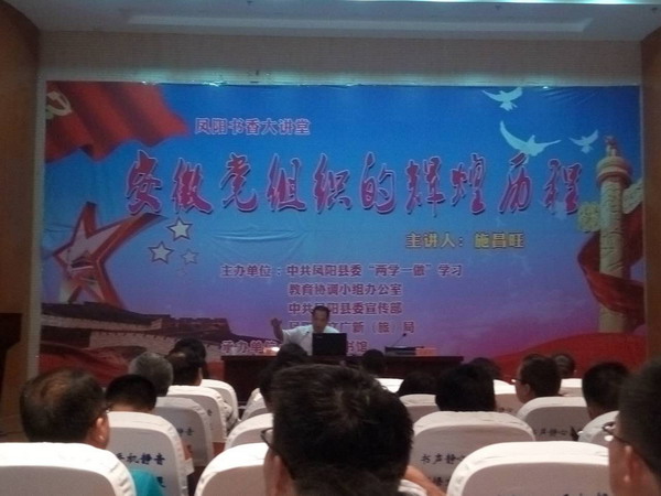 7月6日下午,鳳陽(yáng)縣書香大講堂系列之“安徽黨組織的輝煌歷程”在縣圖書館報(bào)告廳舉行,鳳陽(yáng)縣公司派員聆聽(tīng)。講座由省委黨史研究室副主任施昌旺主講??h委“兩學(xué)一做”學(xué)習(xí)教育協(xié)調(diào)小組辦公室、縣委宣傳部、縣委講師組、縣文廣新(旅)局、縣圖書館相關(guān)負(fù)責(zé)人以及縣直各部門黨員干部聆聽(tīng)了講座。