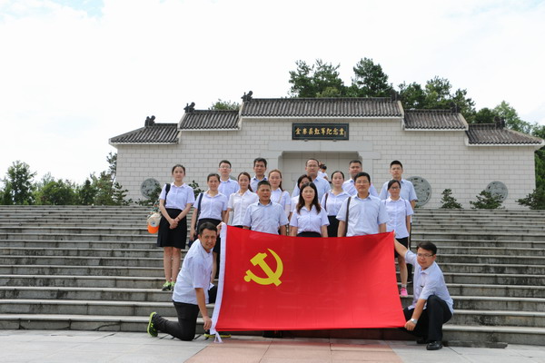 當(dāng)日下午,大家懷著崇敬的心情步入了金寨縣紅軍廣場,微微細(xì)雨后,藍(lán)天白云下的烈士紀(jì)念塔顯得格外莊嚴(yán),站在紀(jì)念塔前,全體黨員莊嚴(yán)肅立,面向黨旗,右手握拳,一起重溫入黨誓詞,一同齊聲高唱中華人民共和國國歌??偨?jīng)理俞友兵和黨支部副書記(主持工作)黃繼萍向烈士紀(jì)念塔敬獻(xiàn)了花籃,向英勇獻(xiàn)身的烈士們鞠躬默哀。隨后,大家參觀了烈士陵園、金寨縣革命博物館和洪學(xué)智將軍紀(jì)念館,仔細(xì)聆聽講解員介紹大別山區(qū)革命先烈們可歌可泣的奮斗歷程,緬懷歷史,憑吊先烈。