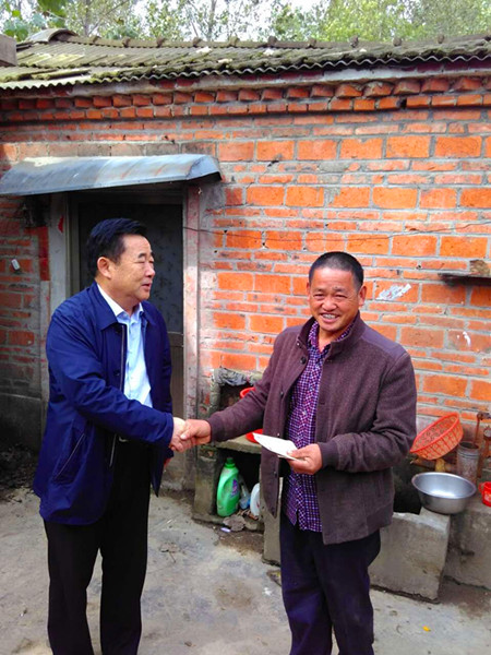 在第三個(gè)“全國扶貧日”來臨之際,10月14日,阜陽市公司黨委書記張華山帶領(lǐng)黨委班子成員來到阜南縣龍王鄉(xiāng)楊郢村開展扶貧幫扶走訪活動(dòng)。張華山一行在龍王鄉(xiāng)鄉(xiāng)干部的陪同下現(xiàn)場參觀楊郢村專業(yè)養(yǎng)殖場,聽取了村干部對村扶貧產(chǎn)業(yè)發(fā)展情況的介紹,張華山詳細(xì)了解脫貧政策落實(shí)情況并就單位開展干部扶貧包戶幫扶進(jìn)行安排部署。最后,張華山一行深入到包戶貧困家庭走訪,為貧困戶脫貧致富獻(xiàn)計(jì)獻(xiàn)策并送上扶貧慰問金。