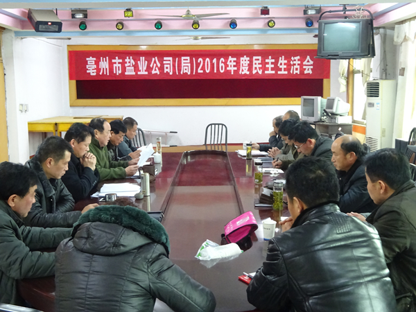根據(jù)省公司黨委統(tǒng)一部署,1月18日亳州市公司黨委召開(kāi)2016年度民主生活會(huì),市公司黨委書記李文俊主持會(huì)議并講話,市公司董事長(zhǎng)、經(jīng)理、局長(zhǎng)榮立華出席會(huì)議,三縣公司黨政主要負(fù)責(zé)同志參加民主生活會(huì)。