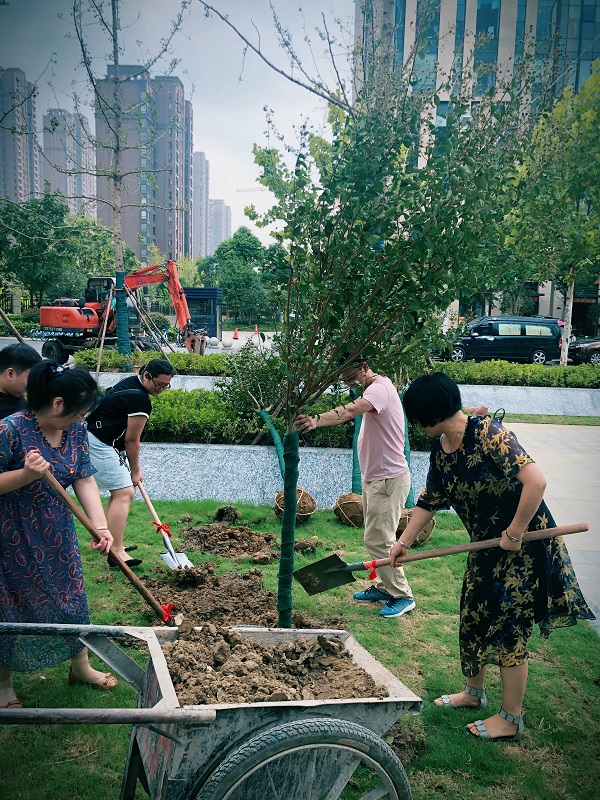 上午9時(shí)許,全體黨員準(zhǔn)時(shí)來到徽鹽世紀(jì)廣場(chǎng)商辦樓前,開始植樹活動(dòng)?;顒?dòng)現(xiàn)場(chǎng),黨員們不顧天氣炎熱,相互協(xié)作,配合默契,展現(xiàn)出一片熱火朝天的勞動(dòng)場(chǎng)景。搬運(yùn)樹苗、揮鍬挖坑、填土栽種……經(jīng)過1個(gè)多小時(shí)的努力,六株蔥郁的紫薇屹立于商辦樓前,為徽鹽世紀(jì)廣場(chǎng)增添了一道亮麗的風(fēng)景。隨后,大家還小心翼翼地在樹上系上“機(jī)關(guān)第一黨支部種植”的銘牌,以此要求全體黨員養(yǎng)護(hù)好這些樹木,號(hào)召大家自覺養(yǎng)成植綠護(hù)綠的良好習(xí)慣。