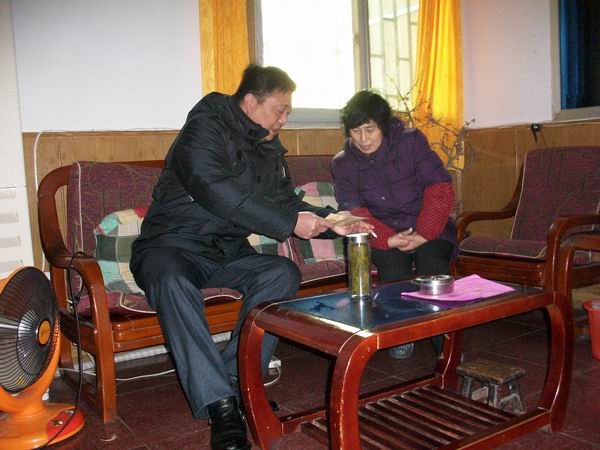 在慰問身患尿毒癥的退休干部張炎祥時,檀經(jīng)理握著老人的手,仔細(xì)詢問著他的病情和身體情況。檀經(jīng)理說,前幾天市公司周閩經(jīng)理剛剛上任就到望江來調(diào)研和慰問,給您老帶來了省、市公司的關(guān)懷和幫助。今天我們剛從縣總工會領(lǐng)到了為您爭取的大病救助金,這個救助金額是今年縣總工會發(fā)放的最高標(biāo)準(zhǔn),此外,單位也經(jīng)研究給發(fā)放了您一些救助金,希望您安心養(yǎng)病,安享晚年。張老激動地握住檀經(jīng)理的手,不住地感謝組織和領(lǐng)導(dǎo)的關(guān)懷。