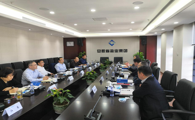 王思軍對趙玉祥一行的到來表示歡迎,重點介紹了省鹽業(yè)集團近年來的經(jīng)營情況、業(yè)務板塊布局、轉(zhuǎn)型發(fā)展及未來戰(zhàn)略規(guī)劃。王思軍指出,省鹽業(yè)集團近年來順應鹽業(yè)體制改革,堅定轉(zhuǎn)型發(fā)展不動搖,在做好傳統(tǒng)主業(yè)的基礎上,積極布局生態(tài)環(huán)保、城市更新、健康養(yǎng)老產(chǎn)業(yè),為安徽鹽業(yè)可持續(xù)、高質(zhì)量發(fā)展夯實基礎。