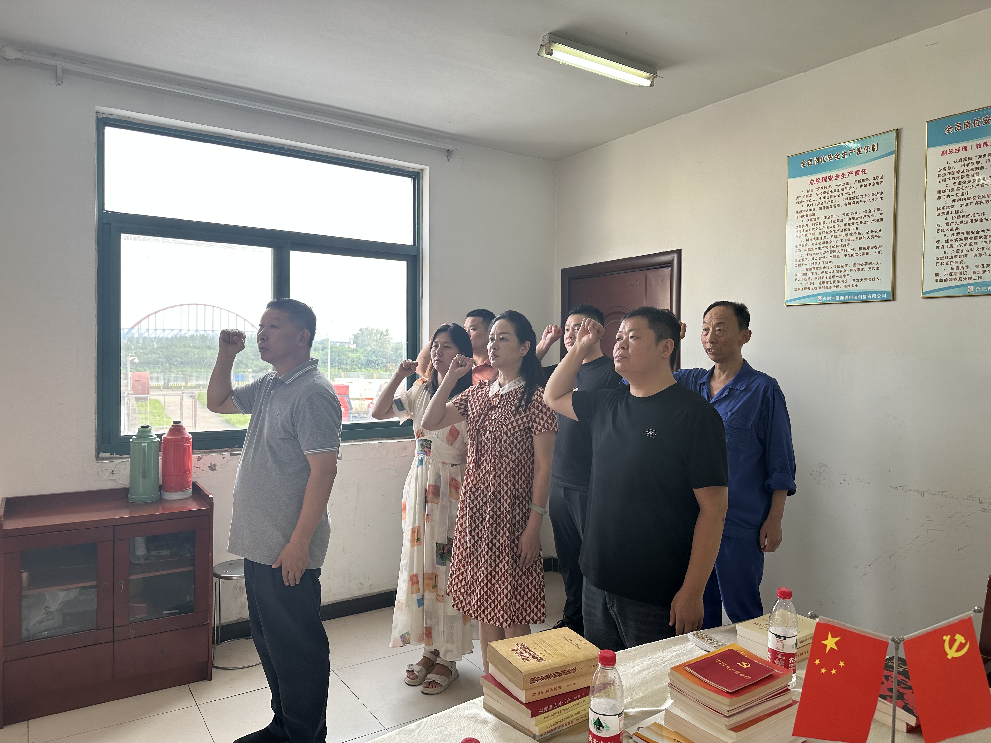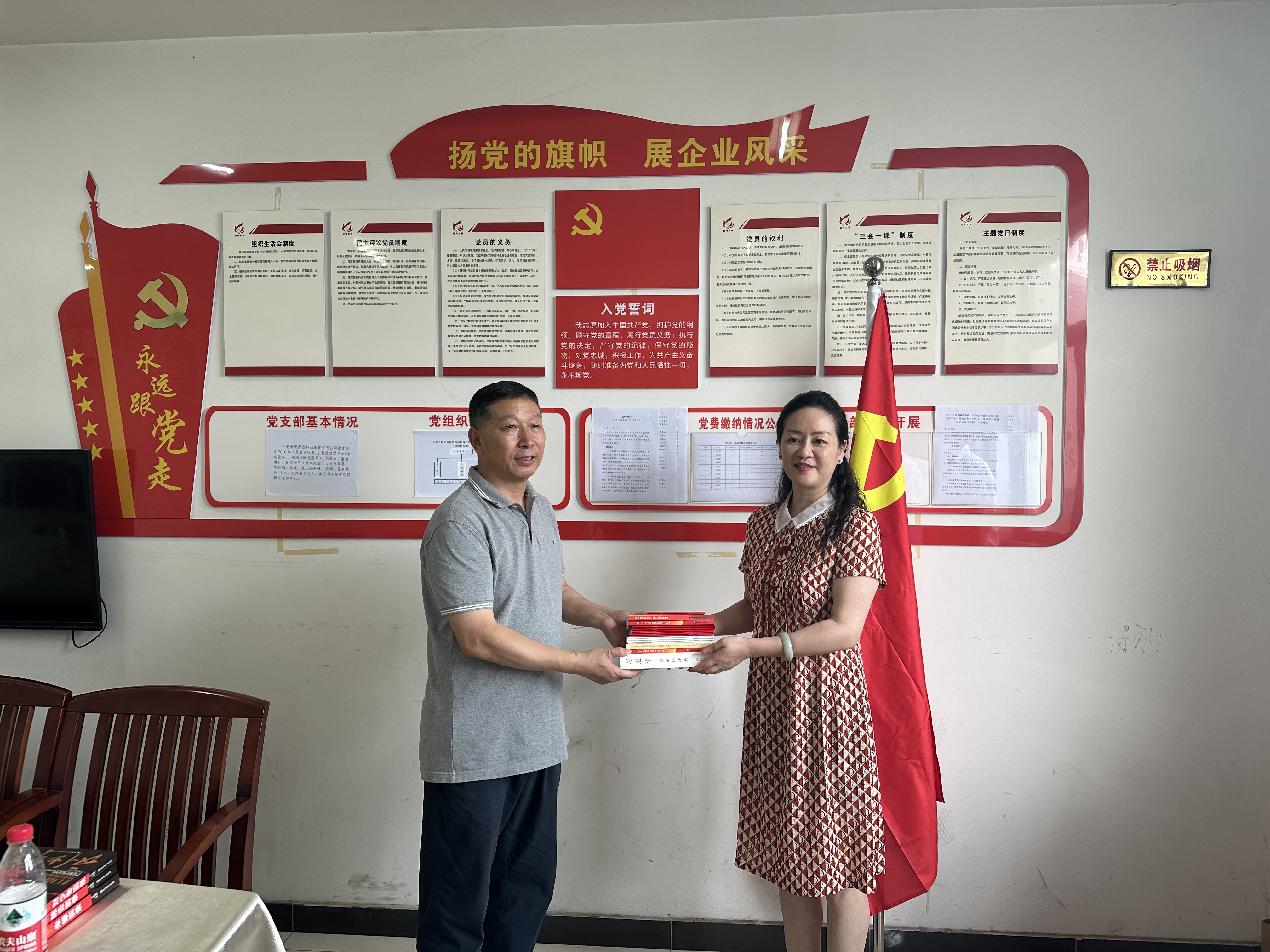 隨后,雙方黨支部書記相互交換了精心準備的黨建書籍,在合肥聚源燃料油銷售有限公司黨支部書記的帶領(lǐng)下,全體黨員一同面向黨旗重溫入黨誓詞。