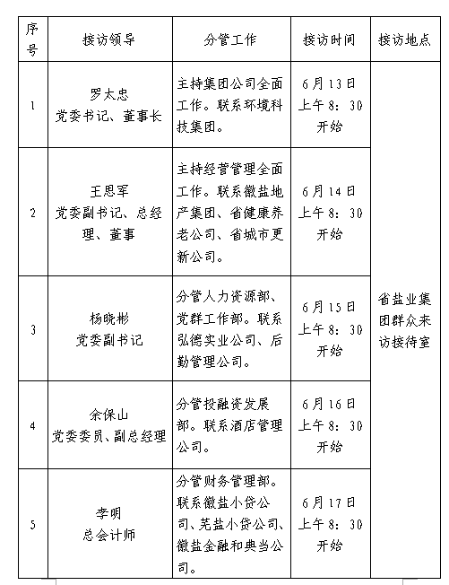 三、省鹽業(yè)集團(tuán)領(lǐng)導(dǎo)接訪安排