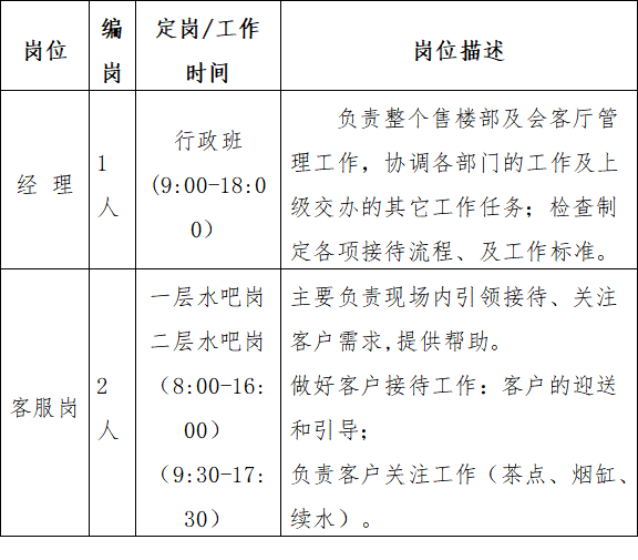 2、會客廳服務(wù)人員各崗位設(shè)置及職責分述