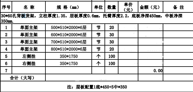 1.采購規(guī)模標(biāo)準(zhǔn):100個(gè)貨架。