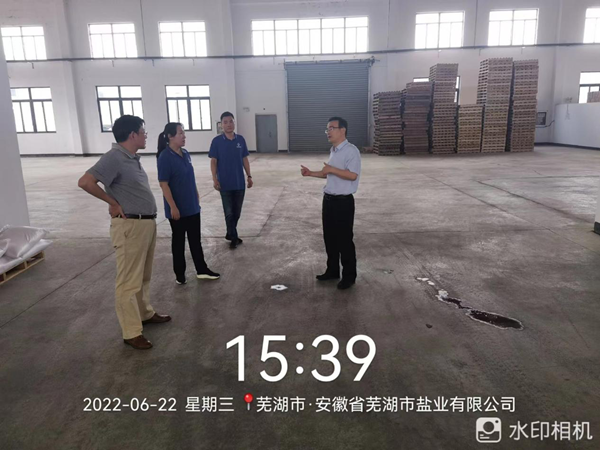 2022年6月22日,集團(tuán)公司黨委委員、副總經(jīng)理,鹽業(yè)發(fā)展公司黨委書記、董事長(zhǎng)王奇赴蕪湖市鹽業(yè)公司檢查安全生產(chǎn)工作。