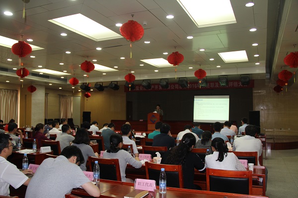 大會首先進(jìn)行的是2016年度部門述職。本次述職是依據(jù)全員績效考核方案的實施要求組織實施的,目的是通過述職評議對徽鹽地產(chǎn)總部各職能部門2016年的各項關(guān)鍵績效指標(biāo)的完成情況進(jìn)行綜合評定。述職開始后,7個職能部門的負(fù)責(zé)人依次上臺演講,演講圍繞2016年度關(guān)鍵績效指標(biāo)完成情況、總體履職情況及成績以及存在問題及建議三個方面進(jìn)行。述職結(jié)束后,由分管領(lǐng)導(dǎo)現(xiàn)場進(jìn)行了口頭點評,楊曉彬逐一對部門工作進(jìn)行了評價,與會評委并根據(jù)述職的情況進(jìn)行了評分。