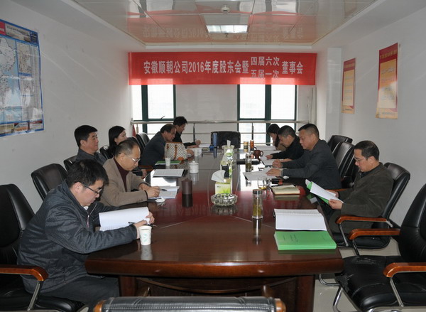 3月18日,安徽順朝公司2016年度股東會暨五屆一次董事會在公司會議室順利召開。省鹽業(yè)總公司黨委委員、副總經(jīng)理王良貴,上海順朝集團董事長張紅霞,董事會成員王克山、張有詞、劉兆虎、黃澤春、陸國富,執(zhí)行監(jiān)事王神甫參加了會議,公司相關人員列席了會議。會議由公司董事長王克山主持。