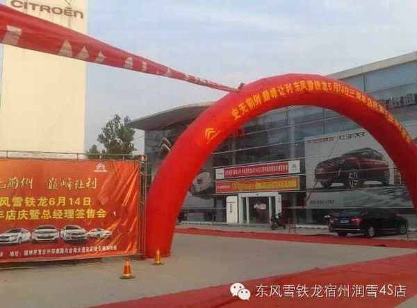 6月14日,弘德實(shí)業(yè)公司宿州潤雪雪鐵龍4S店在展廳成功舉辦宿州潤雪3周年店慶暨總經(jīng)理簽售會活動,活動現(xiàn)場簽下33臺車輛訂單。