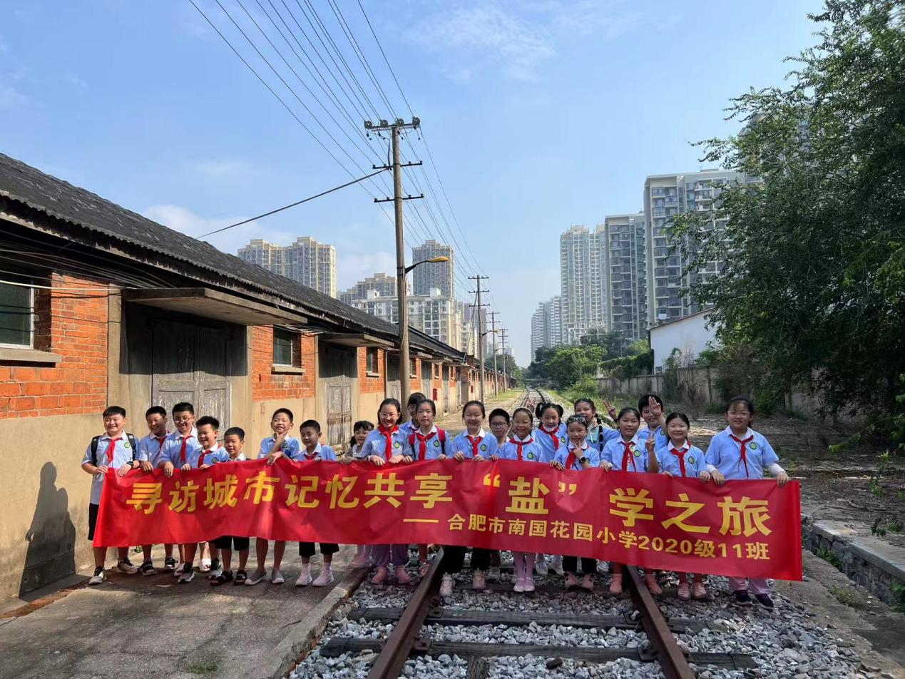 在鐵路專(zhuān)用線(xiàn),同學(xué)們聽(tīng)老師講解,知道合肥人吃的鹽都從哪里來(lái),了解鐵路專(zhuān)用線(xiàn)的建造和停用背景。
