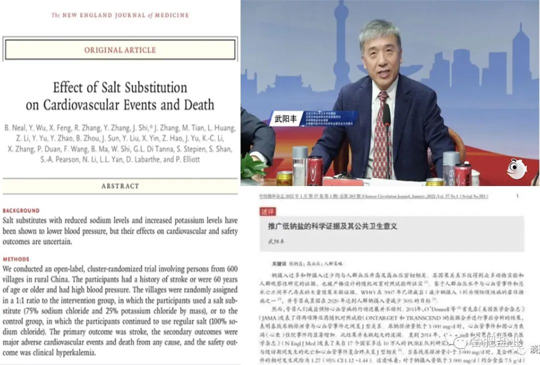 2014年,北京大學(xué)等多所中外大學(xué)開展了一項(xiàng)低鈉鹽研究,在中國(guó)北方600個(gè)村莊,挑選了2萬多名60歲以上,有高血壓、腦卒中基礎(chǔ)病的老人做志愿者,把他們分成兩組,一組免費(fèi)供應(yīng)食用低鈉鹽,一組免費(fèi)供應(yīng)食用普通食鹽,項(xiàng)目持續(xù)跟蹤了5年,5年里有4000多名老人因病去世,因?yàn)樗麄儽揪陀斜容^重的基礎(chǔ)病,經(jīng)過對(duì)比,食用低鈉鹽這組老人腦卒中率下降14%、全因死亡率下降12%,因此推廣低鈉鹽被寫入健康中國(guó)行動(dòng),北京大學(xué)的武陽豐教授有個(gè)觀點(diǎn),就是全國(guó)普通食鹽都換成低鈉鹽,每年能減少100萬人過早死亡。低鈉鹽研究的論文被發(fā)表在世界四大醫(yī)學(xué)期刊-新英格蘭醫(yī)學(xué)雜志(NEJM)上。
