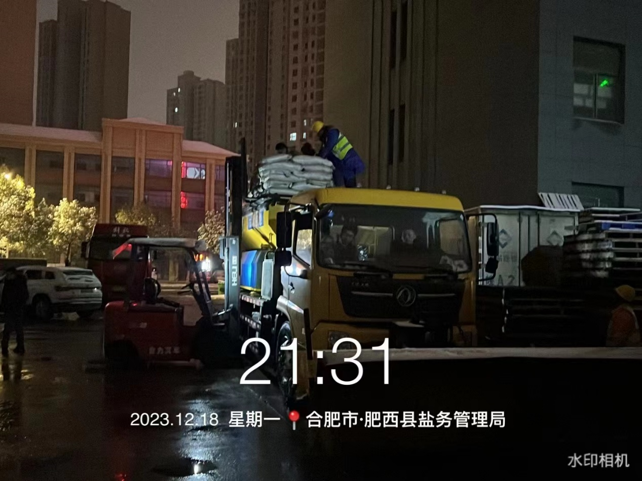 12月18日凌晨,合肥突降大雪,嚴重影響道路交通暢通安全。合肥鹽業(yè)作為全市食鹽和融雪鹽產(chǎn)品供應(yīng)的“主渠道”,切實扛起國企責任擔當、發(fā)揮“頂梁柱”作用。合肥一市五縣按照市公司黨委“保障融雪鹽應(yīng)急預(yù)案”的統(tǒng)一安排,確保全區(qū)交通管網(wǎng)、市政、街道、社區(qū)等融雪鹽供應(yīng)。要求全區(qū)職工“24小時”嚴陣以待,保障人民生命財產(chǎn)安全。
