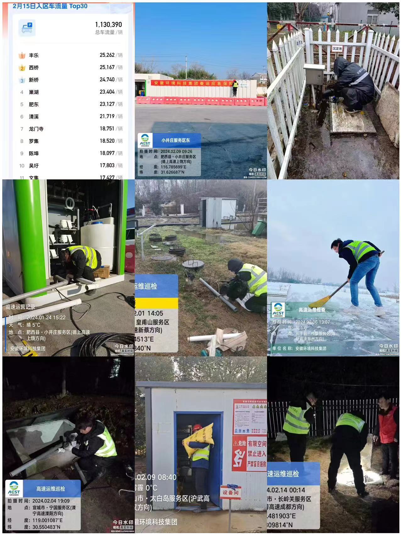 春運(yùn)期間,安徽高速部分服務(wù)區(qū)超歷史最大客流量,針對(duì)污水超量嚴(yán)重的服務(wù)區(qū),環(huán)境科技集團(tuán)公司統(tǒng)籌安排,將高速服務(wù)區(qū)污水外運(yùn)至附近項(xiàng)目公司場(chǎng)站進(jìn)行處置。除夕至年初一期間,環(huán)境科技集團(tuán)公司利用高速客流短時(shí)回落的窗口期,緊急協(xié)調(diào)調(diào)試檢修設(shè)備,確保返程高峰期運(yùn)維服務(wù)質(zhì)量。年初五夜間,由外單位負(fù)責(zé)運(yùn)維的陳埠服務(wù)區(qū)突發(fā)泵站故障,接到協(xié)助請(qǐng)求后,環(huán)境科技集團(tuán)公司不講條件,連夜組織運(yùn)維人員趕赴現(xiàn)場(chǎng),迅速完成搶修,以實(shí)際行動(dòng)踐行國(guó)企擔(dān)當(dāng)。
