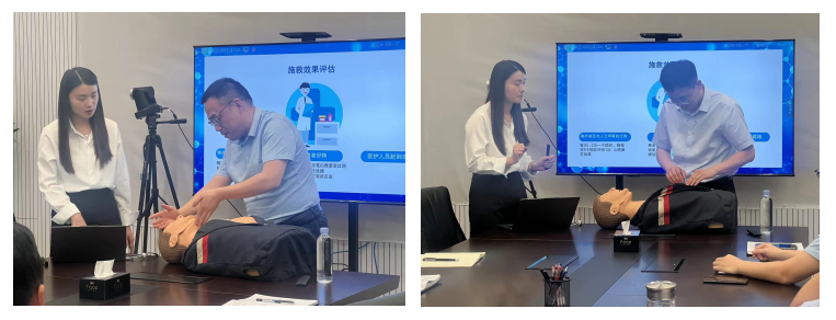 講座中,主講老師詳細(xì)解析了心腦血管的發(fā)病原因、發(fā)病癥狀、表現(xiàn)特點及防控知識,強調(diào)良好的生活習(xí)慣、適度的體育鍛煉、定期體檢等對控制和預(yù)防心腦血管疾病十分有效。同時,主講老師為大家詳細(xì)講解并演示了心肺復(fù)蘇術(shù)(CPR),邀請在場職工實際操作。