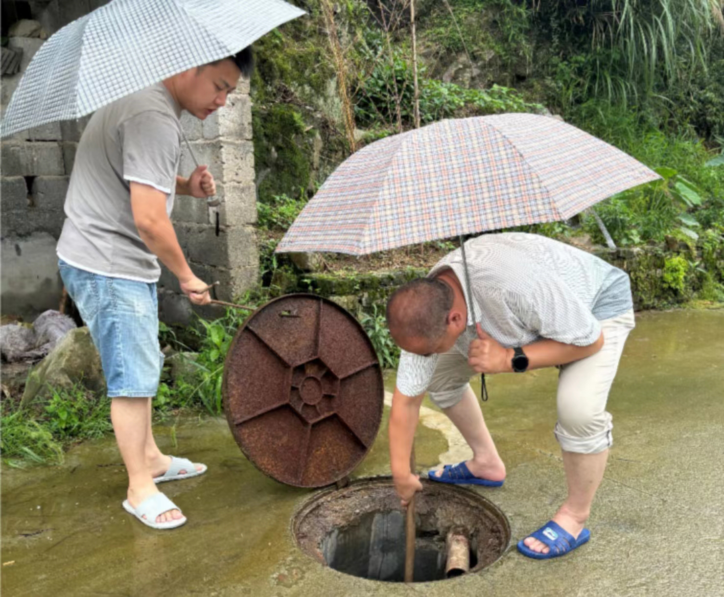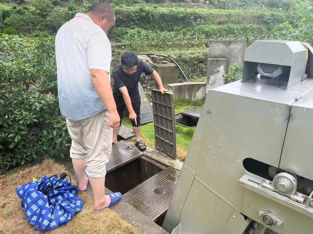 年近六十的楊朝暉是安徽環(huán)境科技集團工程管理部高級經(jīng)理,五月以來便一直在長陔地區(qū)開展污水管網(wǎng)提升改造工作。汛情來臨之前,身為黃山本地人的他原本可以提前回到家中,照顧自己年逾九十的雙親,面對親情與責(zé)任的取舍,楊朝暉毅然決然選擇留守長陔一線。6月20日,在長陔鄉(xiāng)當(dāng)?shù)赝ㄓ嵕W(wǎng)絡(luò)故障,無法聯(lián)系外界的情況下,楊朝暉第一時間對長陔污水處理站和長陔鄉(xiāng)污水管網(wǎng)進行排查,檢查農(nóng)戶接戶管是否存在脫落、破損情況,并對部分村民做好解釋溝通工作,對能修理疏通的立即修理疏通,不能立即處理的,他也詳細(xì)記錄相應(yīng)位置和損壞程度,以便災(zāi)后第一時間開展修復(fù)重建工作。